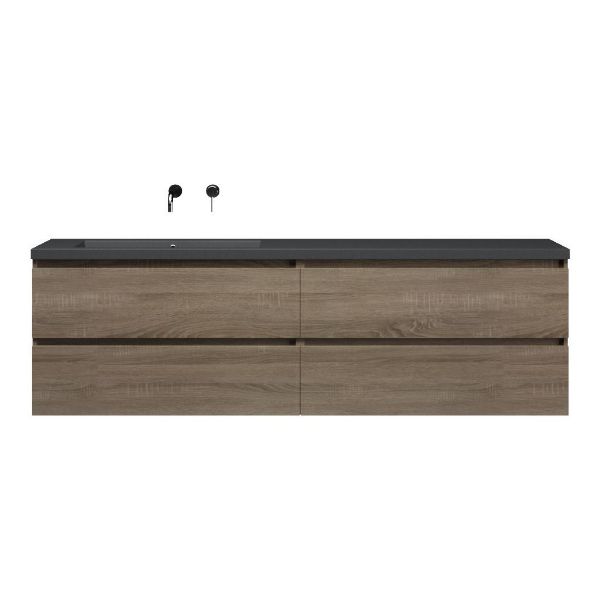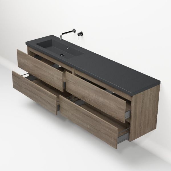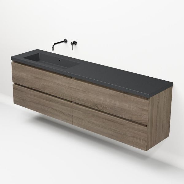 | Bellanti Elena/Esta-q badmeubel 200x46 4 softclose laden donker eiken greeploos quartz enkele wastafel links mat grijs zonder kraangat |