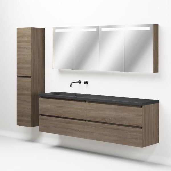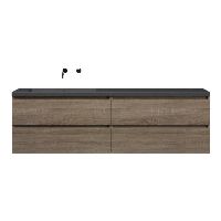 | | Bellanti Elena/Esta-q badmeubel 200x46 4 softclose laden donker eiken greeploos quartz enkele wastafel links mat grijs zonder kraangat |