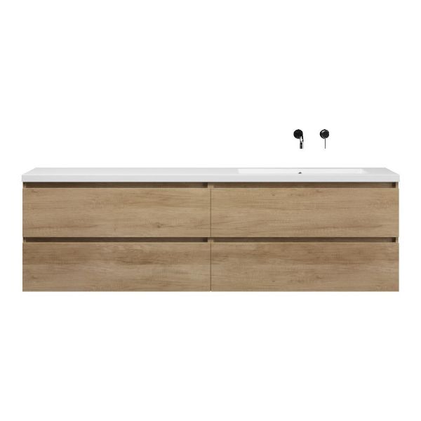 | | Bellanti Elena/Esta-q badmeubel 200x46 4 softclose laden olm greeploos quartz enkele wastafel rechts mat wit zonder kraangat |