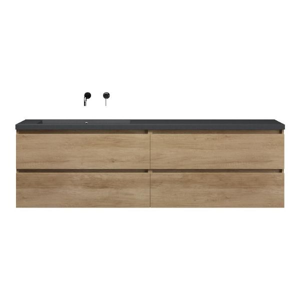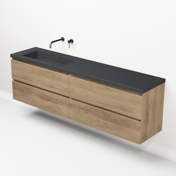 | | Bellanti Elena/Esta-q badmeubel 200x46 4 softclose laden olm greeploos quartz enkele wastafel links mat grijs zonder kraangat |