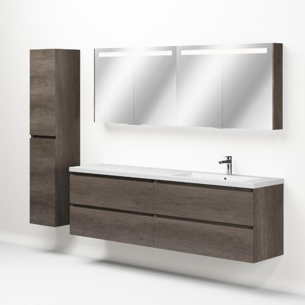 | Bellanti Elena/Esta-q badmeubel 200x46 4 softclose laden olm donker grijs greeploos quartz enkele wastafel rechts mat wit met 1 kraangat |
