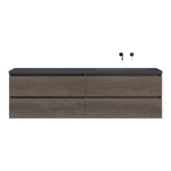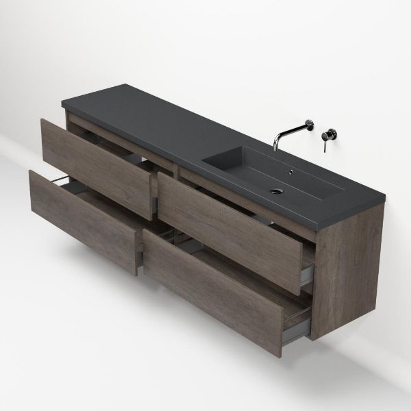 | Bellanti Elena/Esta-q badmeubel 200x46 4 softclose laden olm donker grijs greeploos quartz enkele wastafel rechts mat grijs zonder kraangat |