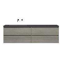 | Bellanti Elena/Esta-q badmeubel 200x46 4 softclose laden eiken licht grijs greeploos quartz enkele wastafel links mat grijs zonder kraangat |