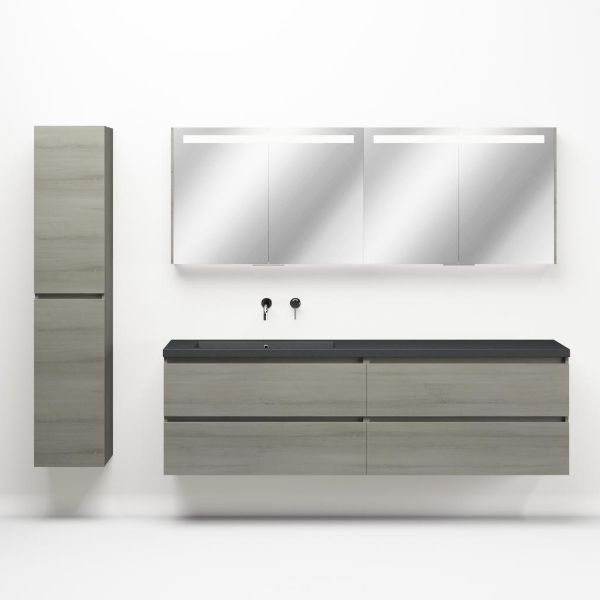 | | Bellanti Elena/Esta-q badmeubel 200x46 4 softclose laden eiken licht grijs greeploos quartz enkele wastafel links mat grijs zonder kraangat |