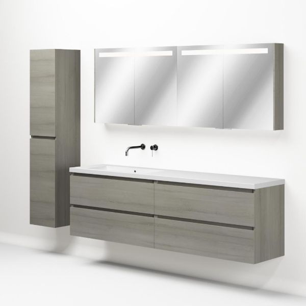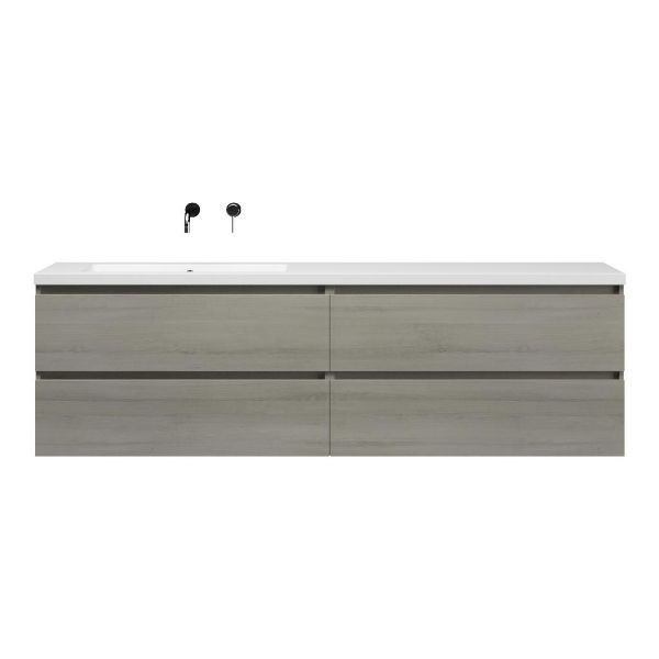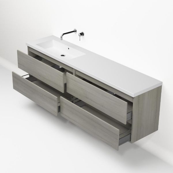 | Bellanti Elena/Esta-q badmeubel 200x46 4 softclose laden eiken licht grijs greeploos quartz enkele wastafel links mat wit zonder kraangat |