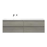 | | Bellanti Elena/Esta-q badmeubel 200x46 4 softclose laden eiken licht grijs greeploos quartz enkele wastafel links mat wit zonder kraangat |