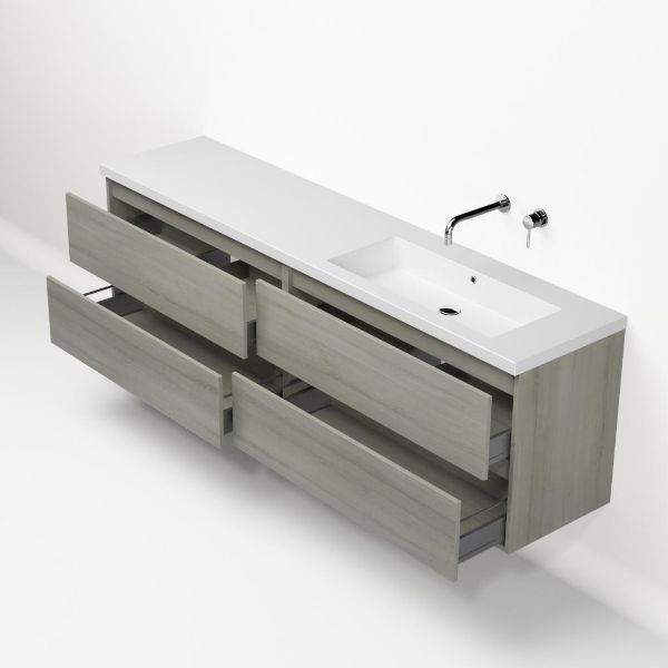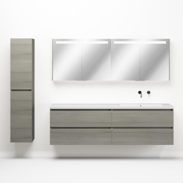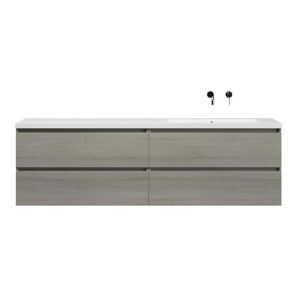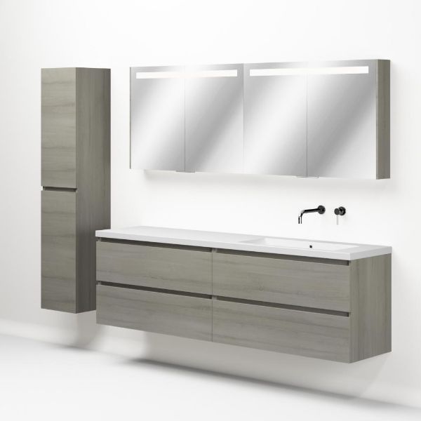 | Bellanti Elena/Esta-q badmeubel 200x46 4 softclose laden eiken licht grijs greeploos quartz enkele wastafel rechts mat wit zonder kraangat |