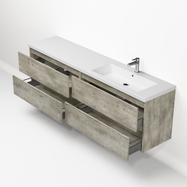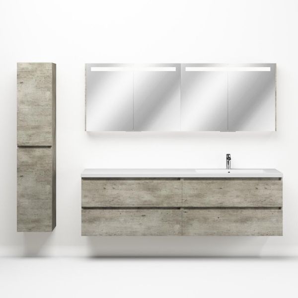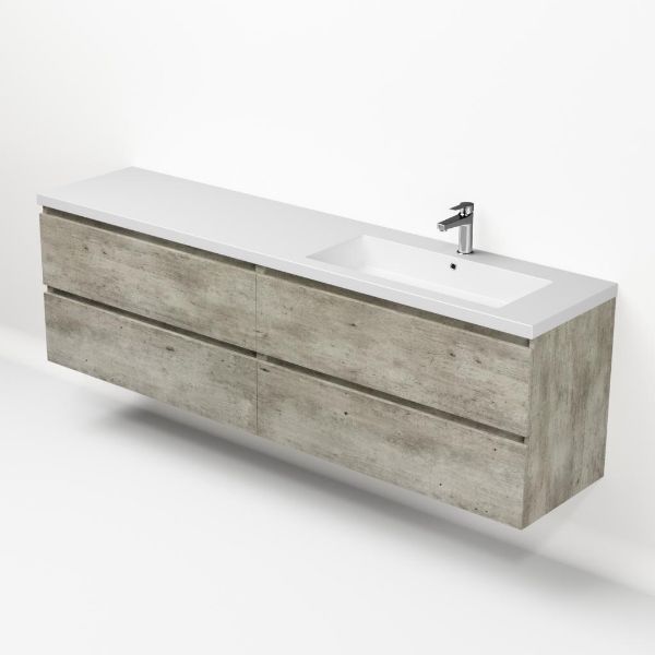 | Bellanti Elena/Esta-q badmeubel 200x46 4 softclose laden steigerhout licht grijs greeploos quartz enkele wastafel rechts mat wit met 1 kraangat |