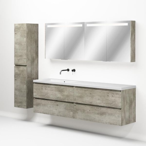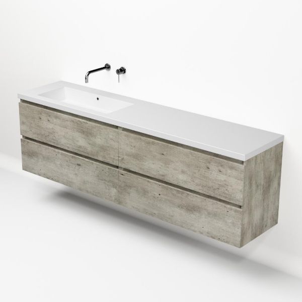 | Bellanti Elena/Esta-q badmeubel 200x46 4 softclose laden steigerhout licht grijs greeploos quartz enkele wastafel links mat wit zonder kraangat |