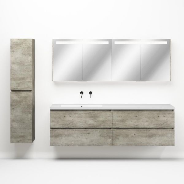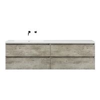 | | Bellanti Elena/Esta-q badmeubel 200x46 4 softclose laden steigerhout licht grijs greeploos quartz enkele wastafel links mat wit zonder kraangat |