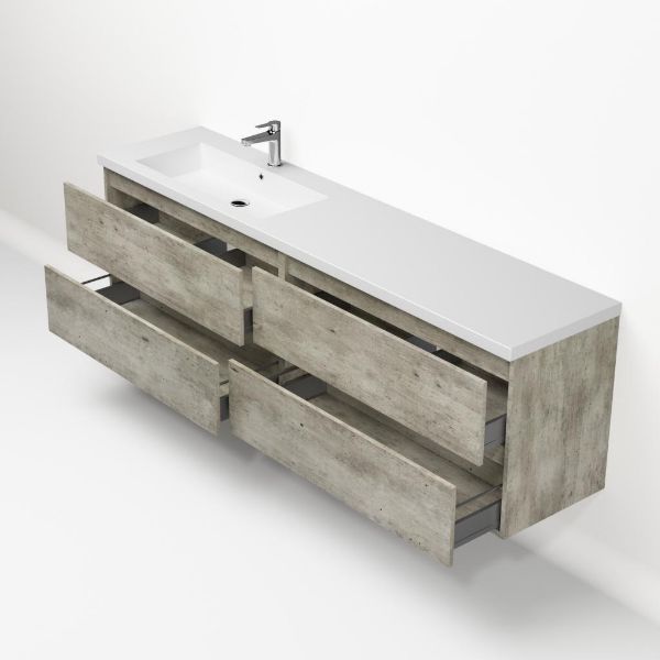 | Bellanti Elena/Esta-q badmeubel 200x46 4 softclose laden steigerhout licht grijs greeploos quartz enkele wastafel links mat wit met 1 kraangat |