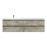 | | Bellanti Elena/Esta-q badmeubel 200x46 4 softclose laden steigerhout licht grijs greeploos quartz enkele wastafel links mat wit met 1 kraangat |