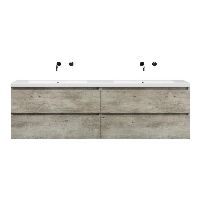 | | Bellanti Elena/Esta-q badmeubel 200x46 4 softclose laden steigerhout licht grijs greeploos quartz dubbele wastafel mat wit zonder kraangaten |
