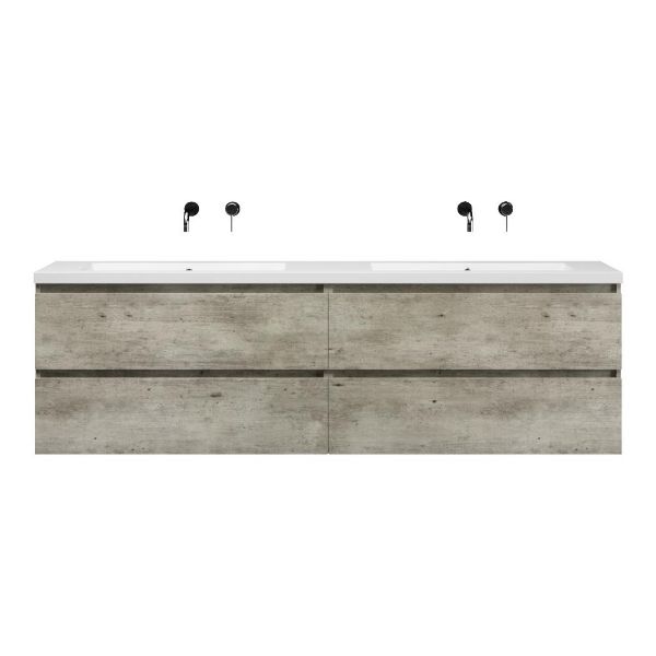 | Bellanti Elena/Esta-q badmeubel 200x46 4 softclose laden steigerhout licht grijs greeploos quartz dubbele wastafel mat wit zonder kraangaten |