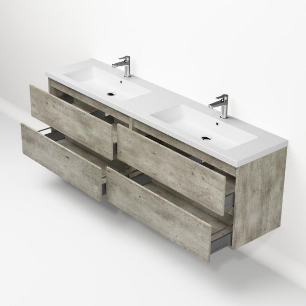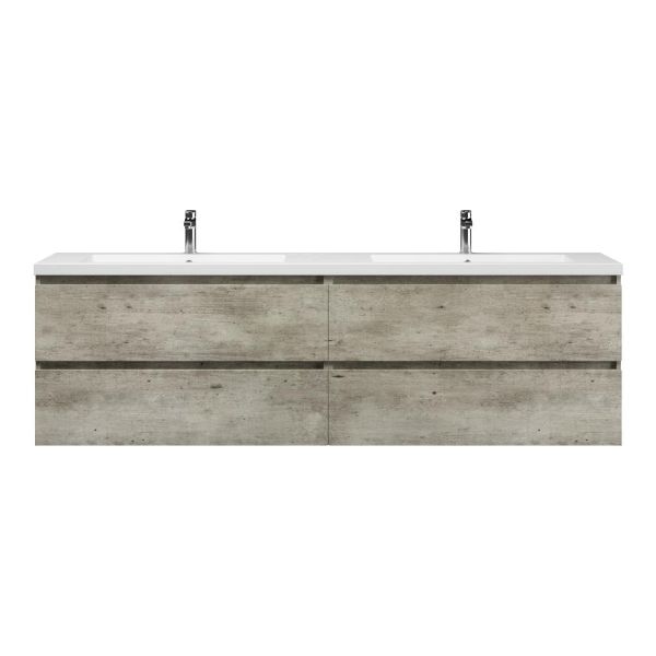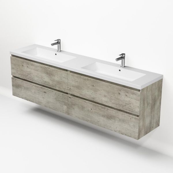 | Bellanti Elena/Esta-q badmeubel 200x46 4 softclose laden steigerhout licht grijs greeploos quartz dubbele wastafel mat wit met 2 kraangaten |