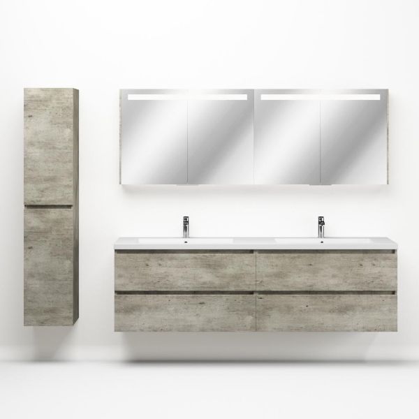 | | Bellanti Elena/Esta-q badmeubel 200x46 4 softclose laden steigerhout licht grijs greeploos quartz dubbele wastafel mat wit met 2 kraangaten |