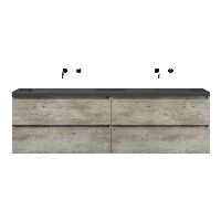 | | Bellanti Elena/Esta-q badmeubel 200x46 4 softclose laden steigerhout licht grijs greeploos quartz dubbele wastafel mat grijs zonder kraangaten |