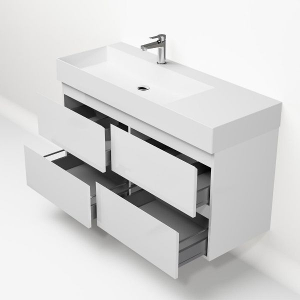 | Bellanti Gisella/Azzurra badmeubel 120x46 4 softclose laden wit hoogglans greeploos keramische wastafel links wit glans met 1 kraangat |