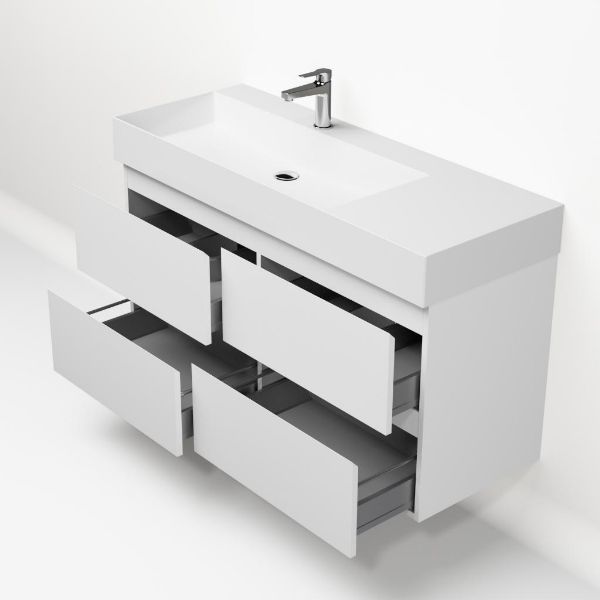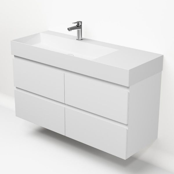 | Bellanti Gisella/Azzurra badmeubel 120x46 4 softclose laden wit mat greeploos keramische wastafel links wit glans met 1 kraangat |