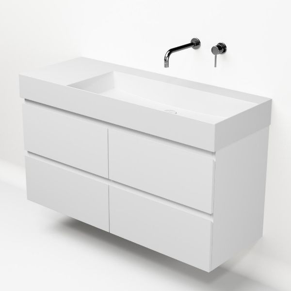 | Bellanti Gisella/Azzurra badmeubel 120x46 4 softclose laden wit mat greeploos keramische wastafel rechts wit glans zonder kraangaten |