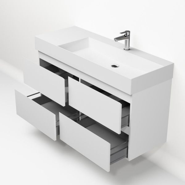| Bellanti Gisella/Azzurra badmeubel 120x46 4 softclose laden wit mat greeploos keramische wastafel rechts wit glans met 1 kraangat |
