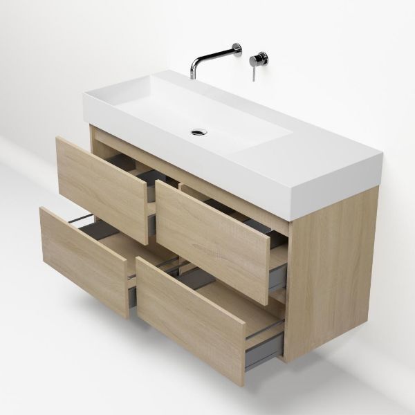 | Bellanti Elena/Azzurra badmeubel 120x46 4 softclose laden eiken licht greeploos keramische wastafel links wit glans zonder kraangaten |