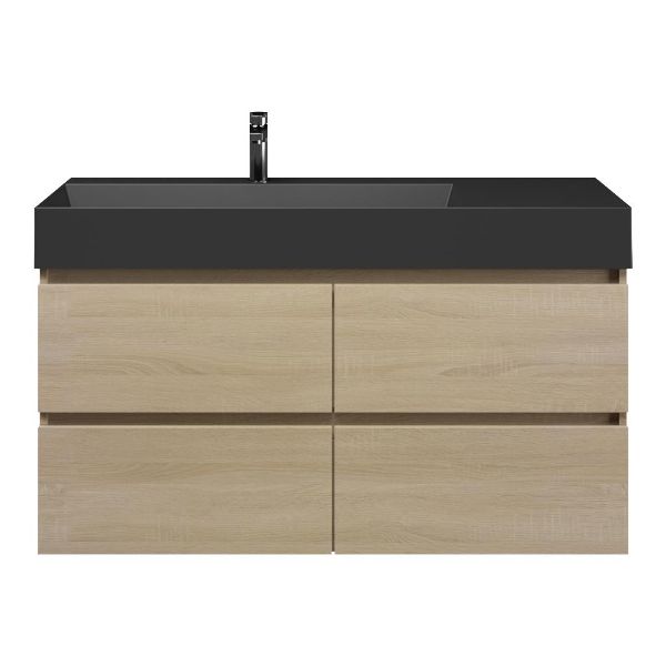 | Bellanti Elena/Azzurra badmeubel 120x46 4 softclose laden eiken licht greeploos keramische wastafel links antraciet mat met 1 kraangat |