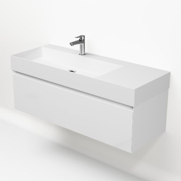 | Bellanti Solo/Azzurra badmeubel 120x46 1 softclose lade wit hoogglans greeploos keramische wastafel links wit glans met 1 kraangat |