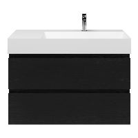Greeploos badkamermeubel in de kleur zwart mat eiken is 100 cm breed. De wastafel is vervaardig in keramiek en heeft de kleur wit mat keramiek. Dit badkamermeubel met deze wastafel is leverbaar tussen de 60 cm t/m 160 cm