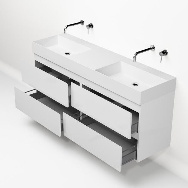 | | Bellanti Gisella/Azzurra badmeubel 160x46 4 softclose laden hoogglans wit greeploos keramiek dubbele wastafel wit zonder kraangaten |