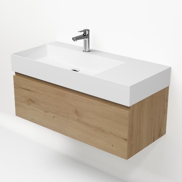 | Bellanti Solo/Azzurra badmeubel 100x46 1 softclose lade eiken natuur greeploos keramische wastafel links wit glans met 1 kraangat |