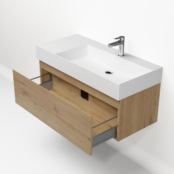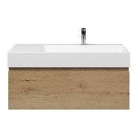 | Bellanti Solo/Azzurra badmeubel 100x46 1 softclose lade eiken natuur greeploos keramische wastafel rechts wit mat met 1 kraangat |
