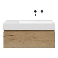 Greeploos badkamermeubel in de kleur eiken natuur is 100 cm breed. De wastafel is vervaardig in keramiek en heeft de kleur wit mat keramiek. Dit badkamermeubel met deze wastafel is leverbaar tussen de 60 cm t/m 160 cm