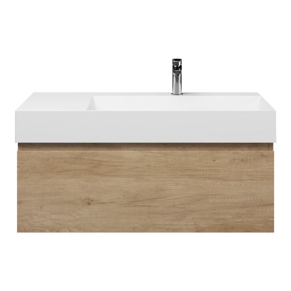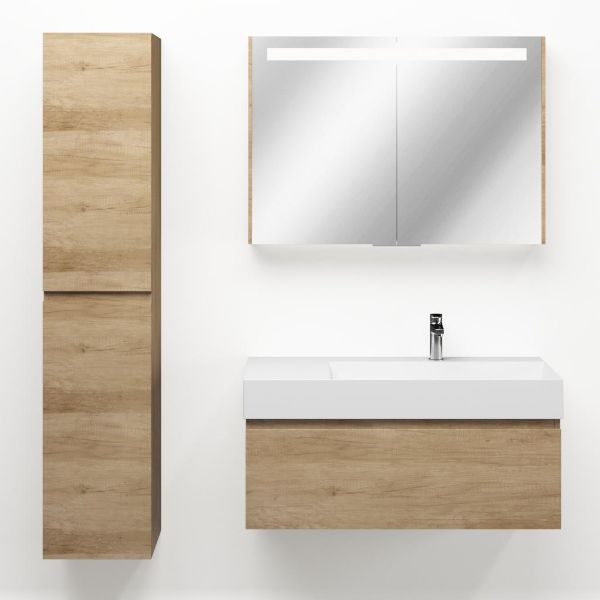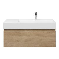 Greeploos badkamermeubel in de kleur olm is 100 cm breed. De wastafel is vervaardig in keramiek en heeft de kleur wit keramiek. Dit badkamermeubel met deze wastafel is leverbaar tussen de 60 cm t/m 160 cm