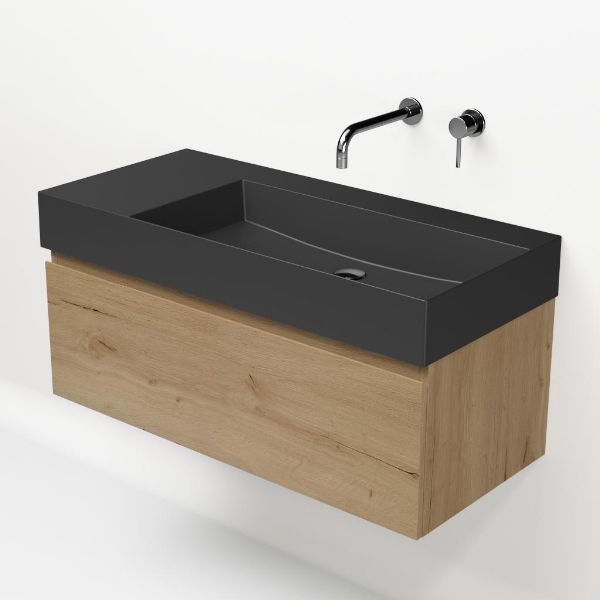 | | Bellanti Solo/Azzurra badmeubel 100x46 1 softclose lade eiken natuur greeploos keramische wastafel rechts antraciet zonder kraangaten |