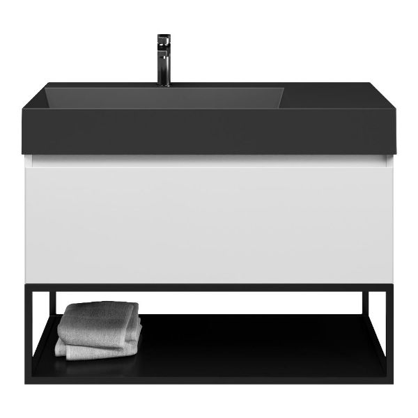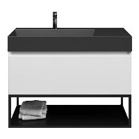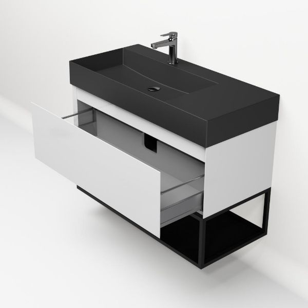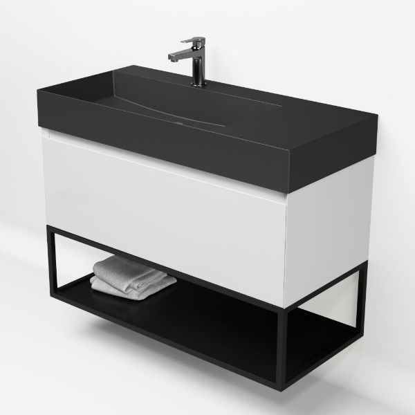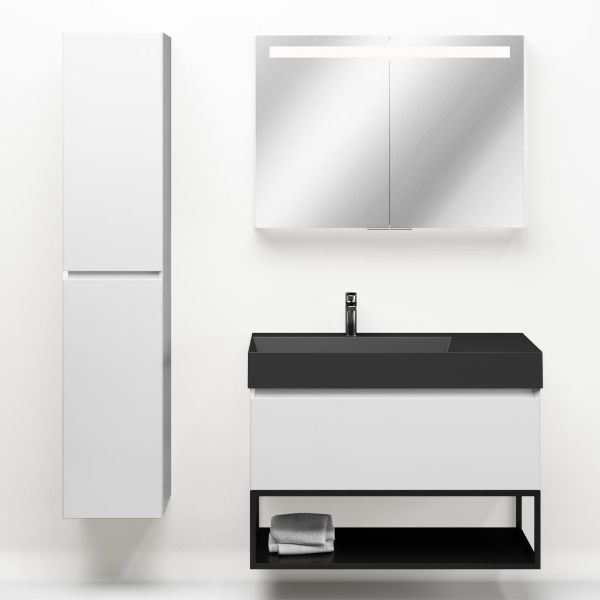 | | Bellanti Solo/Tela/Azzurra badmeubel 100x46 1 softclose lade wit hoogglans greeploos keramische wastafel links antraciet mat met 1 kraangat met mat zwart metalen frame |