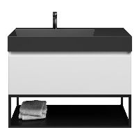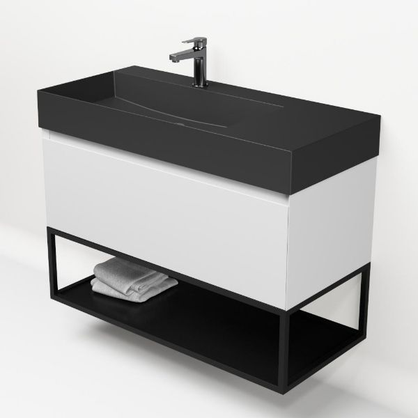 | | Bellanti Solo/Tela/Azzurra badmeubel 100x46 1 softclose lade wit mat greeploos keramische wastafel links antraciet mat met 1 kraangat met mat zwart metalen frame |