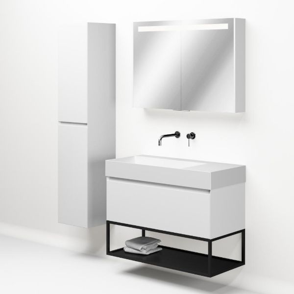 | | Bellanti Solo/Tela/Azzurra badmeubel 100x46 1 softclose lade wit mat greeploos keramische wastafel links wit mat zonder kraangaten met mat zwart metalen frame |