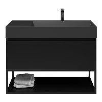| | Bellanti Solo/Tela/Azzurra badmeubel 100x46 1 softclose lade zwart mat greeploos keramische wastafel rechts antraciet mat met 1 kraangat met mat zwart metalen frame |