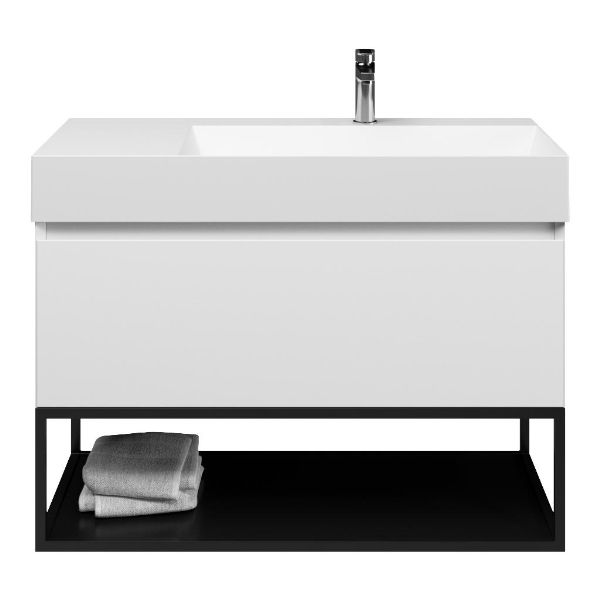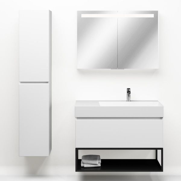 | | Bellanti Solo/Tela/Azzurra badmeubel 100x46 1 softclose lade wit mat greeploos keramische wastafel rechts wit mat met 1 kraangat met mat zwart metalen frame |