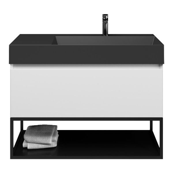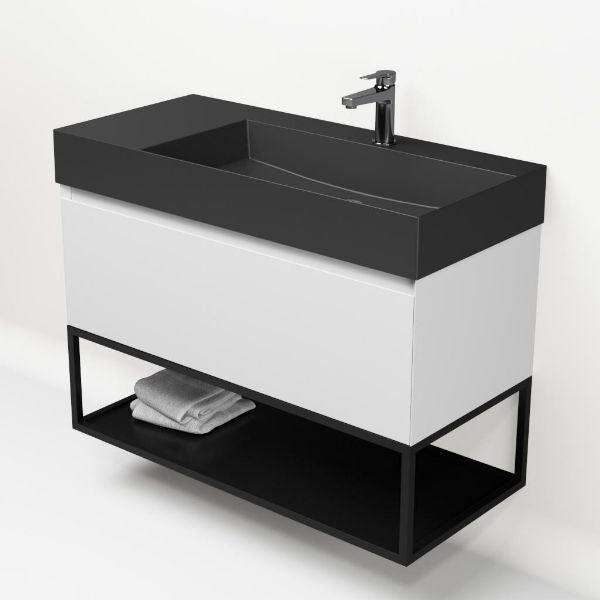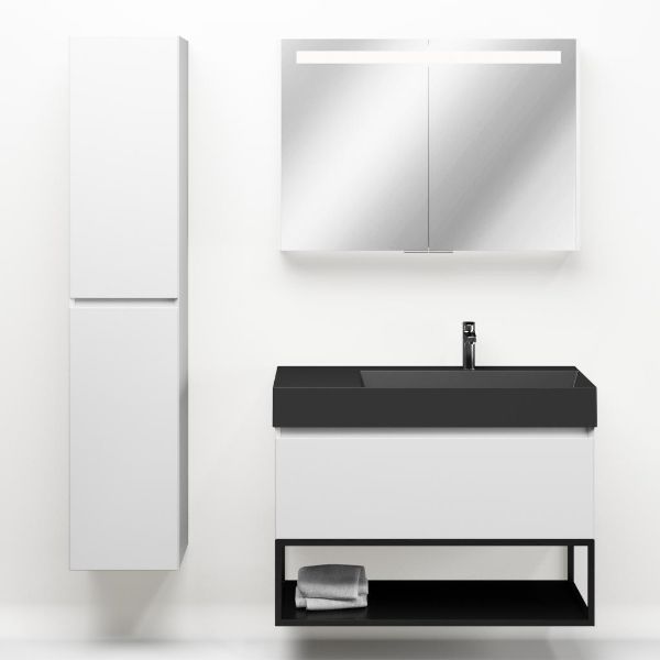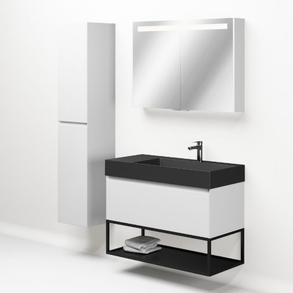 | | Bellanti Solo/Tela/Azzurra badmeubel 100x46 1 softclose lade wit mat greeploos keramische wastafel rechts antraciet mat met 1 kraangat met mat zwart metalen frame |