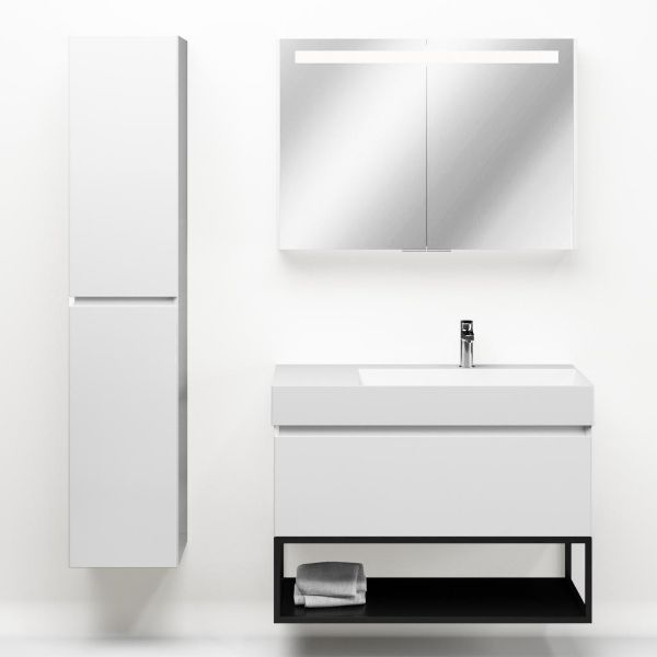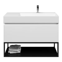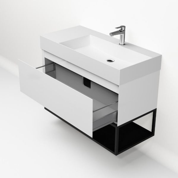 | | Bellanti Solo/Tela/Azzurra badmeubel 100x46 1 softclose lade wit hoogglans greeploos keramische wastafel rechts wit mat met 1 kraangat met mat zwart metalen frame |