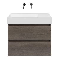 Greeploos badkamermeubel in de kleur olm donker grijs is 80 cm breed. De wastafel is vervaardig in keramiek en heeft de kleur wit keramiek. Dit badkamermeubel met deze wastafel is leverbaar tussen de 60 cm t/m 120 cm