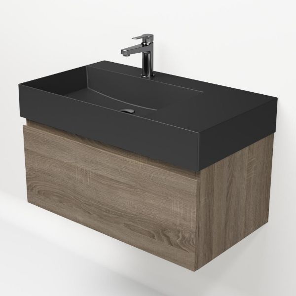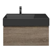 | | Bellanti Solo/Azzurra badmeubel 80x46 1 softclose lade eiken donker greeploos keramische wastafel links antraciet mat met 1 kraangat |