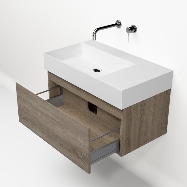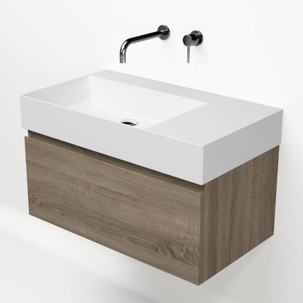 | Bellanti Solo/Azzurra badmeubel 80x46 1 softclose lade eiken donker greeploos keramische wastafel links wit mat zonder kraangaten |