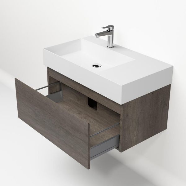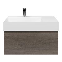 Greeploos badkamermeubel in de kleur olm donker grijs is 80 cm breed. De wastafel is vervaardig in keramiek en heeft de kleur wit keramiek. Dit badkamermeubel met deze wastafel is leverbaar tussen de 60 cm t/m 160 cm