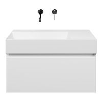 Greeploos badkamermeubel in de kleur wit mat is 80 cm breed. De wastafel is vervaardig in keramiek en heeft de kleur wit keramiek. Dit badkamermeubel met deze wastafel is leverbaar tussen de 60 cm t/m 160 cm