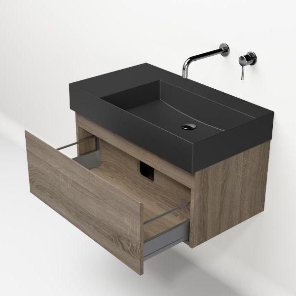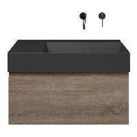 | | Bellanti Solo/Azzurra badmeubel 80x46 1 softclose lade eiken donker greeploos keramische wastafel rechts antraciet mat zonder kraangaten |