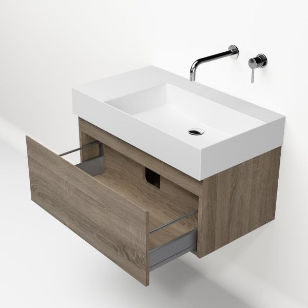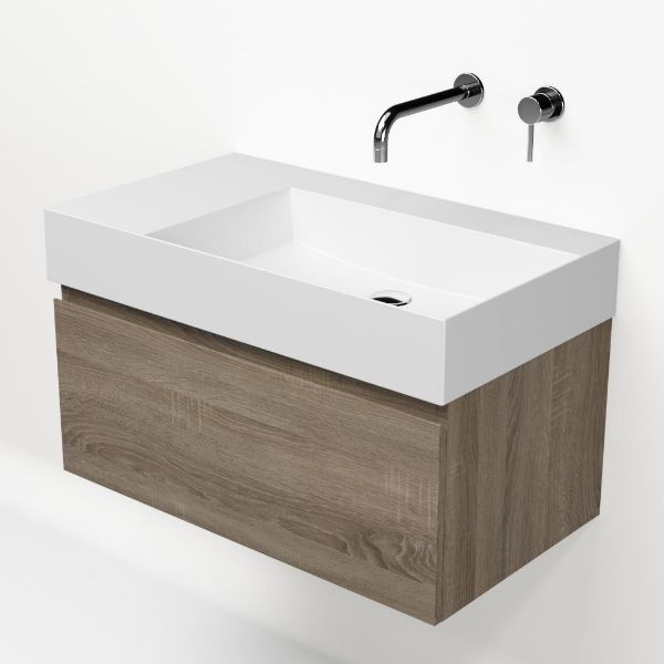 | | Bellanti Solo/Azzurra badmeubel 80x46 1 softclose lade eiken donker greeploos keramische wastafel rechts wit mat zonder kraangaten |