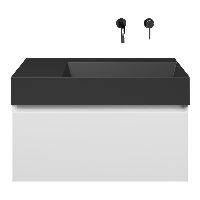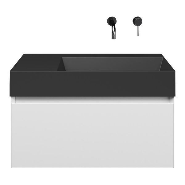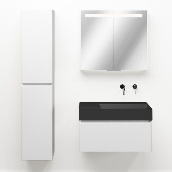 Greeploos badkamermeubel in de kleur wit mat is 80 cm breed. De wastafel is vervaardig in keramiek en heeft de kleur antraciet mat keramiek. Dit badkamermeubel met deze wastafel is leverbaar tussen de 60 cm t/m 160 cm